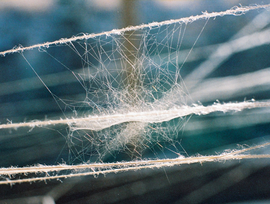 Installation in the form of a web made of silk thread set in a disused enamel factory on the island of Kea, Greece. Referencing the Greek myth of Arachni which tells the story of the maiden extremely talented in the art of weaving, who was condemned when challenging the goddess Athena in this art.