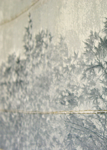 In the Japanese tradition of visiting scenic areas where maple tree leaves have turned red in the autumn, this textile piece was made in response to visiting the maple tree gardens in Kyoto.