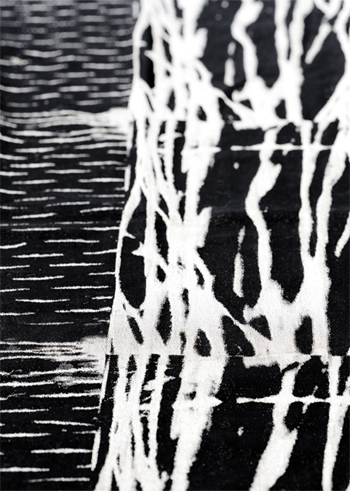 Large Scale textile installation commissioned for the Jerwood Contemporary Makers Exhibition. The piece explores scale and the transformative nature of textiles within an architectural space. Supported by Grants for the Arts and woven at the Oriole Mill in North Carolina [2009 dimensions w:300cm l:1600cm]