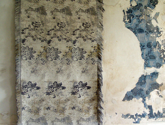 Site specific textile wallhanging inspired by an 18C wallpaper from Godolphin House, Cornwall.